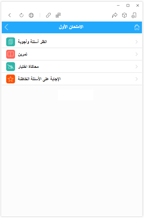 الهاتف المحمول نسخة من التطبيق ما مجموعه 4 وظائف ، انظر إلى نموذج سلسلة من التمارين ، محاكاة اختبار ، سجل خاطئ .