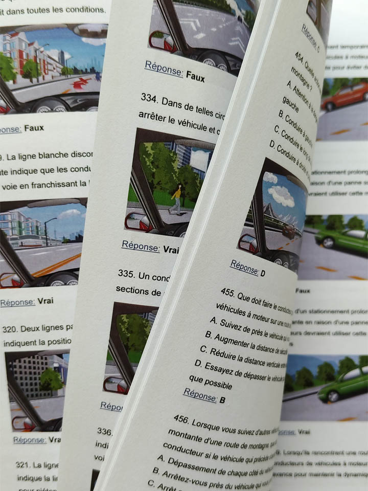 TLe livre imprimé de l'examen de permis de conduire chinois Sujet IV Examen français a 84 pages avec un total de 700 questions.