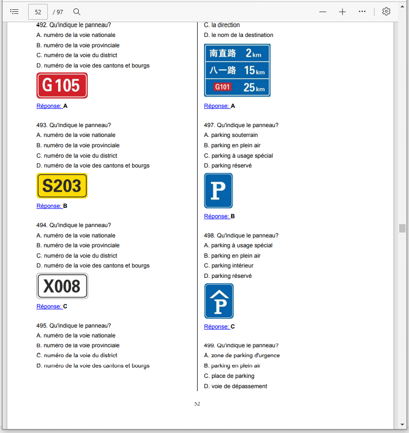 2026 permis de conduire chinois Sujet 1 Examen version française PDF