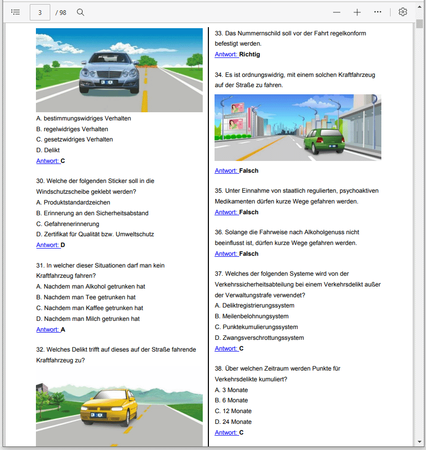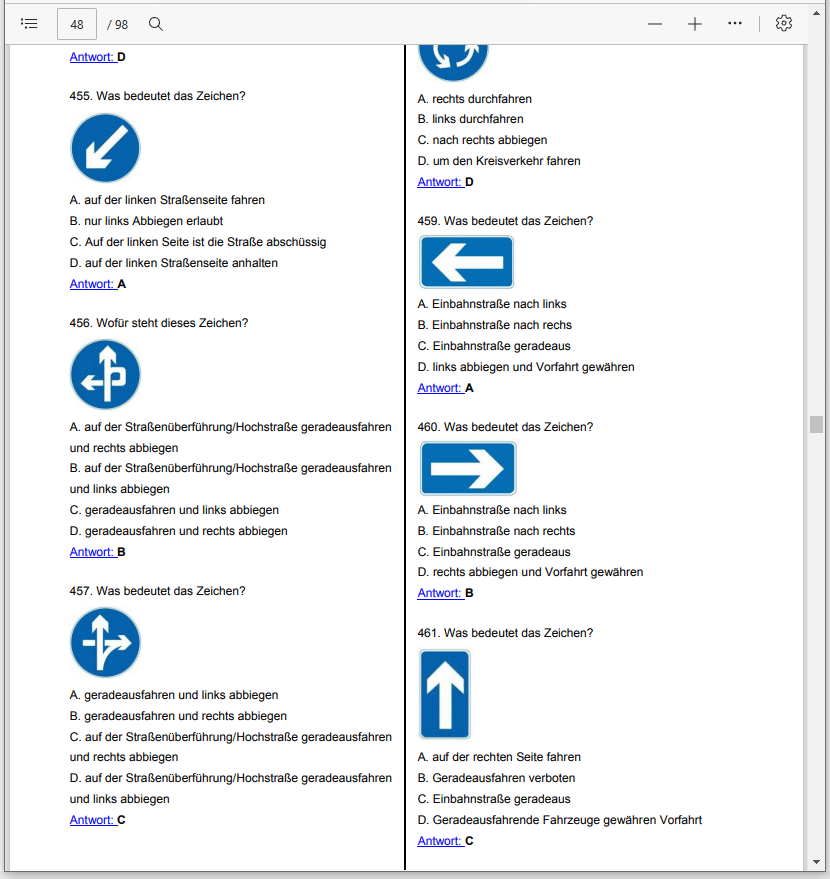 Die PDF-Datei enth"alt insgesamt 98 Seiten und 902 Fragen. Es kann auf Mobiltelefonen, Computern und Tablets angesehen werden.