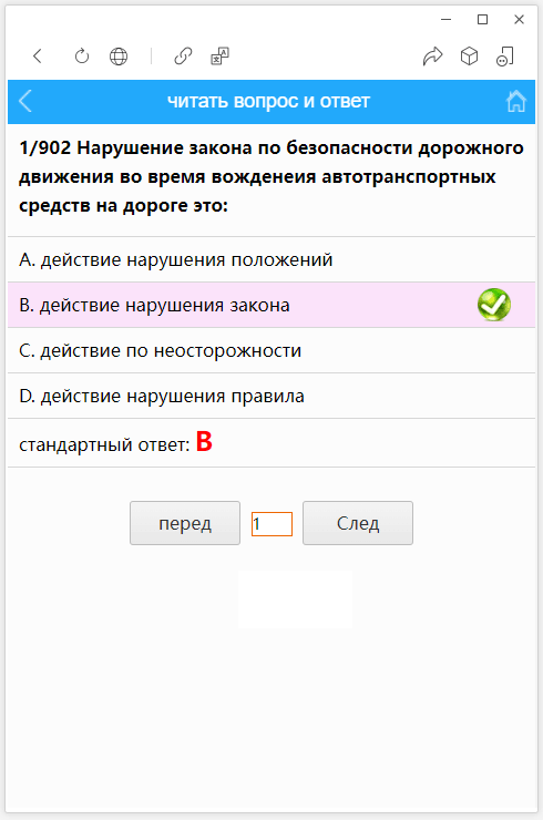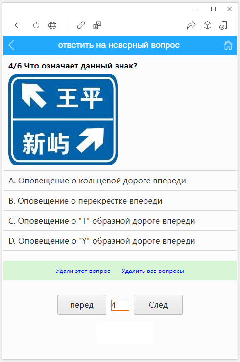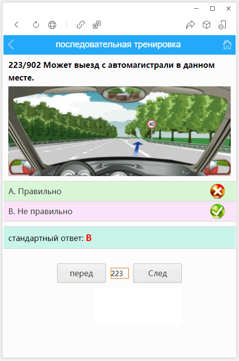 2. последовательная тренировка:Задайте вопрос в порядке библиотеки вопросов, отвечайте правильно и автоматически переходите на следующий вопрос, ответ на ошибку показывает правильный ответ.