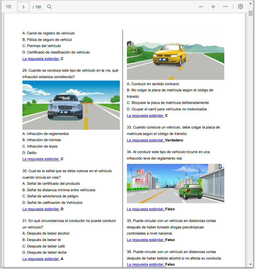 2026 examen de la asignatura de licencia de conducir de China versión pdf en español